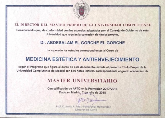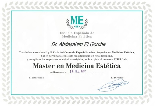 ¿Cuáles son las principales especialidades de Abdesalam EL Gorche EL Gorche?Abdesalam EL Gorche EL Gorche es médico estético, médico de familia. Te mostramos algunos de los servicios que ofrece gracias a su trayectoria y amplia experiencia: Visita Medicina Estética y Cirugía Cosmética, Primera visita Medicina Estética y Cirugía Cosmética, Visita de revisión, Tratamientos con Neurotoxina, Infiltraciones, Rellenos faciales, Aumento de labios, Infiltraciones de ácido hialurónico, Rejuvenecimiento facial, Tratamientos para el sobrepeso y la obesidad.