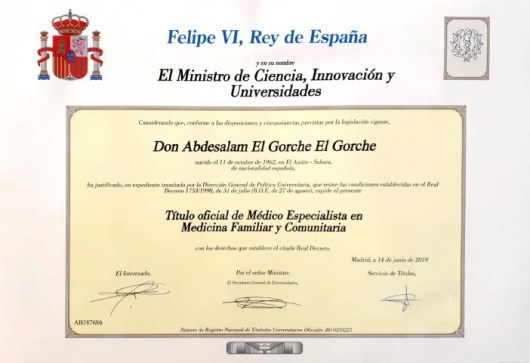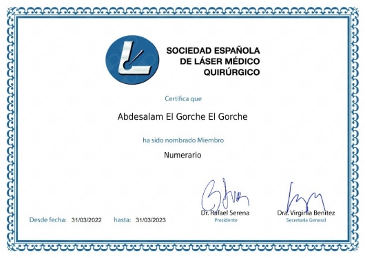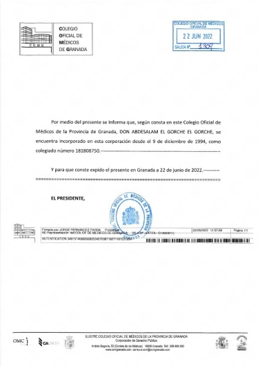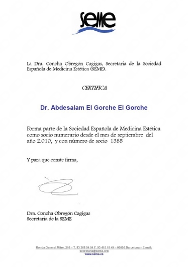 Núm. Colegiado: 181808750 SEME con el nº 1385 SELMQ con el nº 327