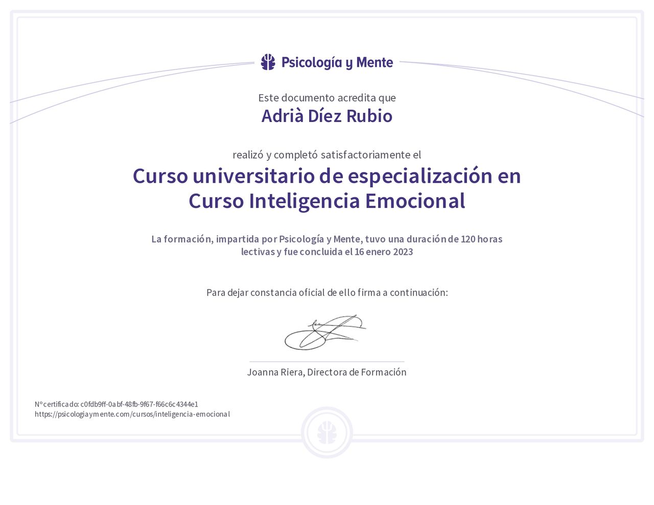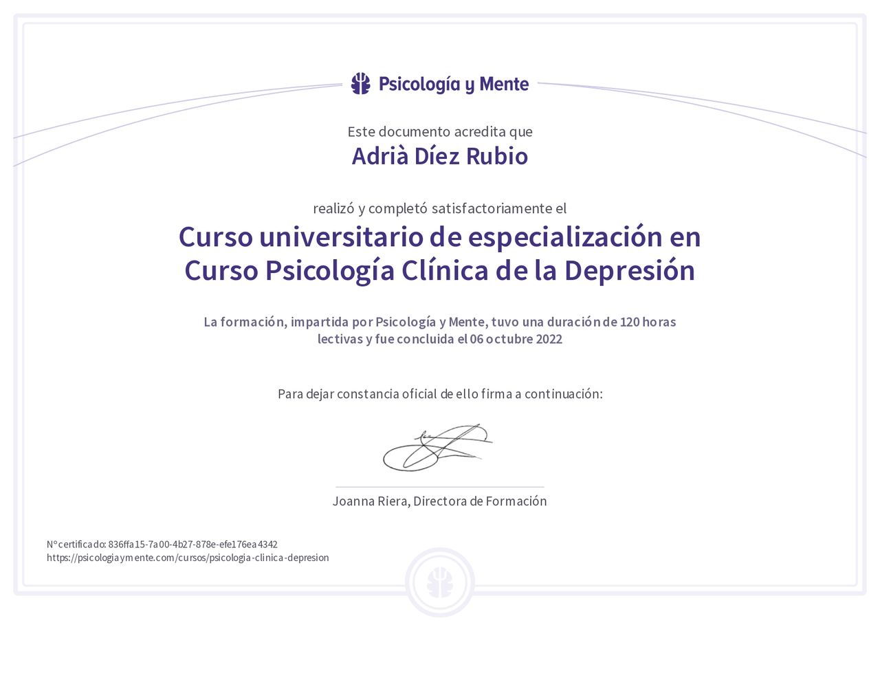 Mi formación incluye especializaciones en depresión, inteligencia emocional, personalidad y liderazgo, y tengo un interés especial en los procesos de duelo, un ámbito al que dedico mucha sensibilidad y cuidado.