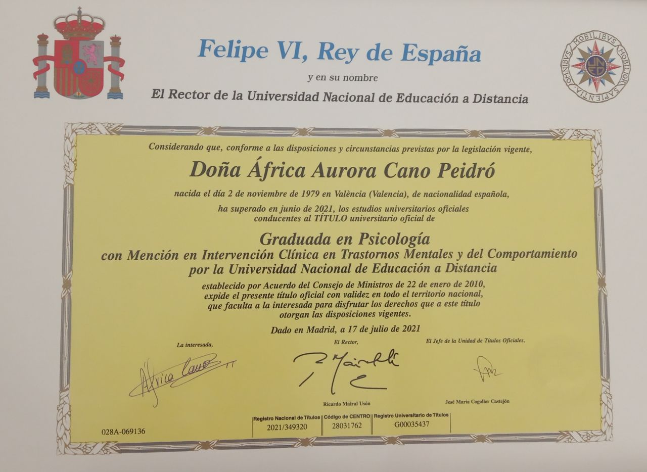¿Qué idiomas habla África Cano Peidró?Puedes comunicarte con África Cano Peidró en Español.