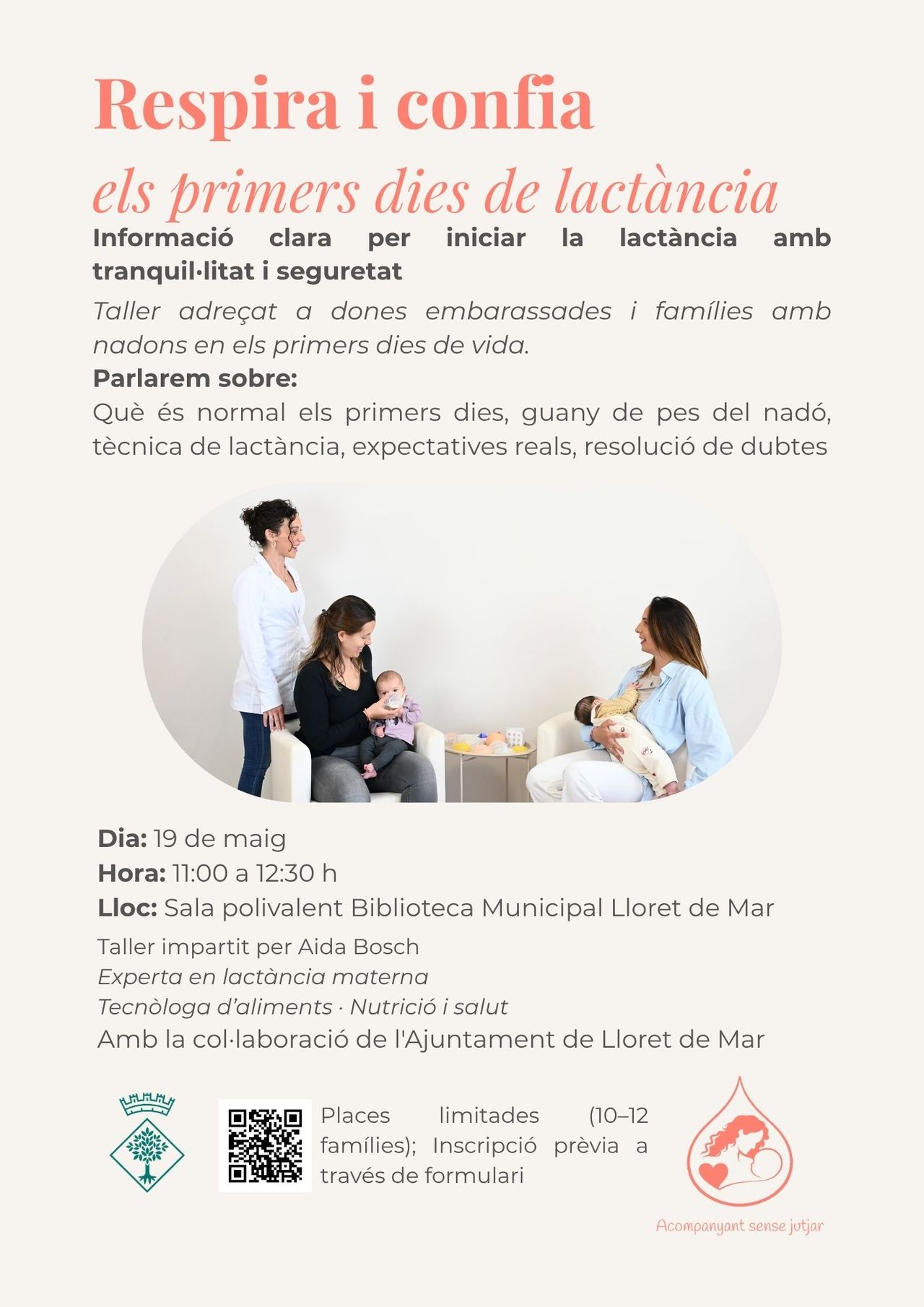 Taller gratuito de lactancia para embarazadas y familias con recién nacidos. Información clara y basada en evidencia sobre los primeros días: qué es normal, técnica, ganancia de peso y resolución de dudas. Plazas limitadas. Inscripción previa.