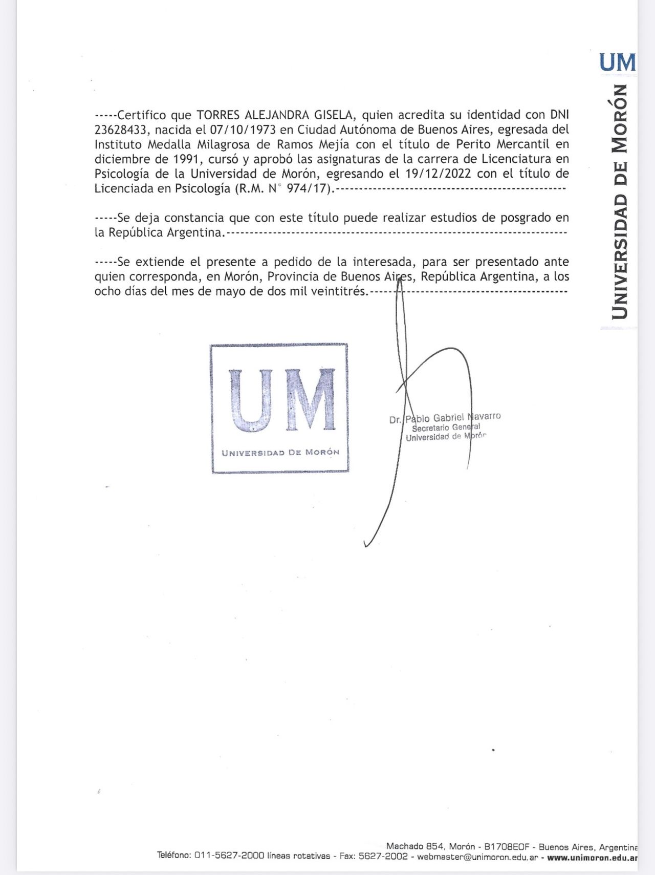 ¿Cuáles son las principales especialidades de Alejandra Torres?Alejandra Torres es psicóloga. Te mostramos algunos de los servicios que ofrece gracias a su trayectoria y amplia experiencia: Consulta online, Tratamiento depresión (sesiones online), Terapia online, Consulta psicológica online, Primera visita (sesiones online), Tratamiento en autoestima (sesiones online), Modificación del estilo de vida (sesiones online), Tratamiento para la depresión (teleconsulta online), Tratamiento en problemas de ansiedad y estrés (sesiones online), Tratamiento online de problemas de ansiedad.