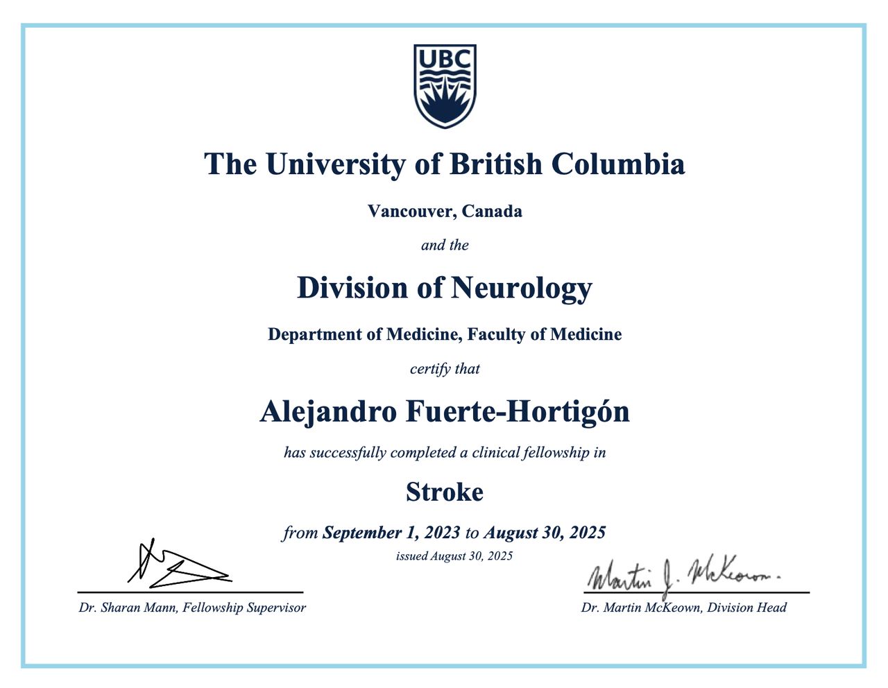 Neurólogo certificado en España, especializado en enfermedades neurovasculares en Canadá, con un fuerte enfoque en la prevención del ictus mediante intervenciones basadas en el estilo de vida.