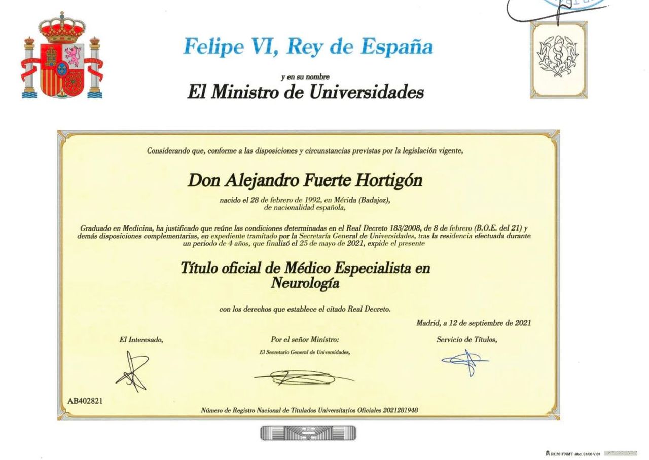 ¿Cuáles son las principales especialidades de Alejandro Fuerte Hortigón?Alejandro Fuerte Hortigón es neurólogo. Te mostramos algunos de los servicios que ofrece gracias a su trayectoria y amplia experiencia: Primera visita Neurología, Segunda opinión médica, Consulta neurología.