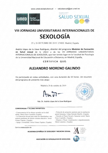 ¿Cuáles son las principales especialidades de Alejandro Moreno Galindo?Alejandro Moreno Galindo es psicólogo, sexólogo. Te mostramos algunos de los servicios que ofrece gracias a su trayectoria y amplia experiencia: Informe pericial psicológico, Terapia cognitivo-conductual, Reestructuración cognitiva, Desensibilización sistemática, Terapia familiar, Relajación, Inoculación del estrés, Modificación del estilo de vida, Terapia de pareja, Coaching personal.