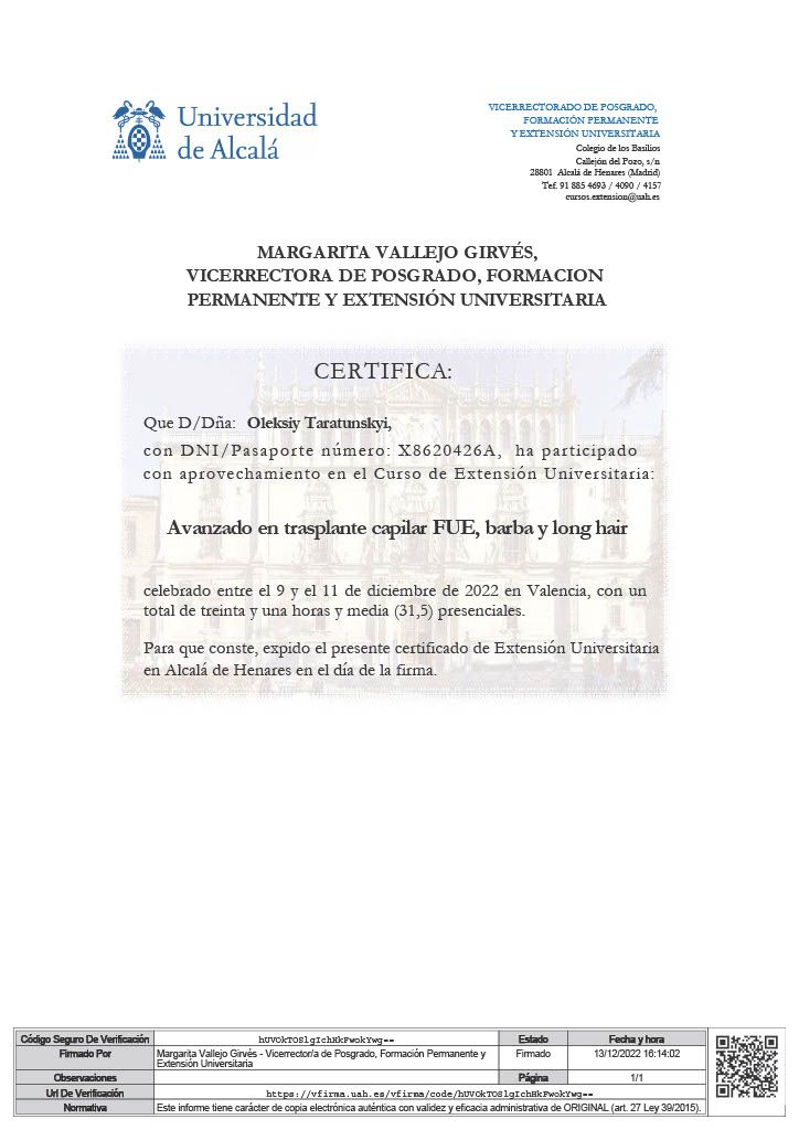 100% recomendable! El Dr. Alex Taratunskiy hizo trasplante del pelo a mi pareja. Los resultados son increíbles! Muy profesional, atento, muy pendiente del paciente