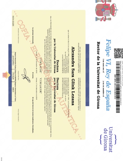 Doctora en Psicología, Salud y Calidad de Vida por la Universitat de Girona; obteniendo la calificación de Sobresaliente cum laude por Unanimidad por su tesis doctoral de investigación.