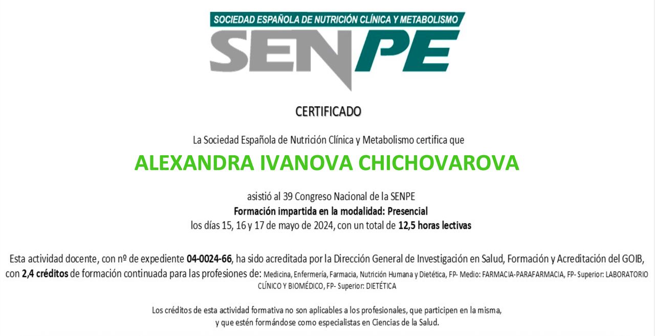 ¿Cuáles son las principales especialidades de Alexandra Ivanova?Alexandra Ivanova es dietista nutricionista. Te mostramos algunos de los servicios que ofrece gracias a su trayectoria y amplia experiencia: Primera visita Nutrición y Dietética, Alimentación en el embarazo, Alimentación en el postparto, Alimentación en la menopausia, Alimentación para la fertilidad, Alimentación saludable, Dieta para Síndrome de Intestino Irritable, Educación nutricional, Tratamiento de colon irritable - Intolerancias alimentarias, Tratamiento nutricional endometriosis.