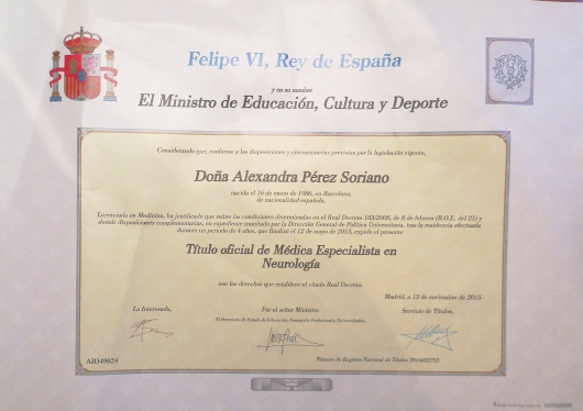 ¿Cuáles son las principales especialidades de Alexandra Pérez Soriano?Alexandra Pérez Soriano es neuróloga. Te mostramos algunos de los servicios que ofrece gracias a su trayectoria y amplia experiencia: Visitas sucesivas Neurología, Seguimiento online, Atención a pacientes con enfermedades raras, Consulta online, Visita de revisión, Primera visita Neurología, Infiltración cervical con Neurotoxina, Infiltración con Neurotoxina en blefaroespasmo, Infiltración craneo-facial con Neurotoxina, Exploración neurológica.