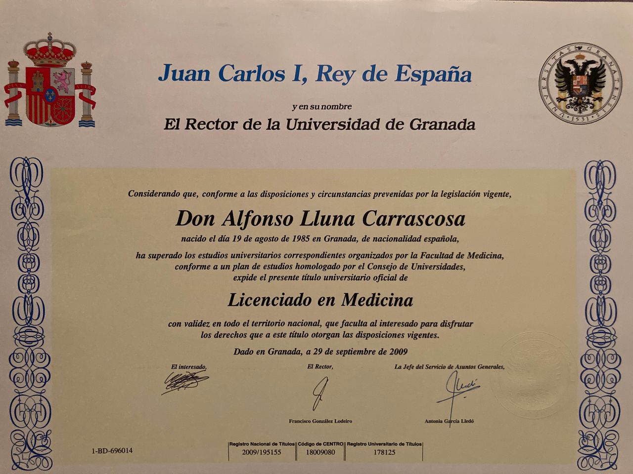 ¿Cómo puedo reservar una cita con Alfonso Lluna Carrascosa?El calendario que muestra Alfonso Lluna Carrascosa en Doctoralia está actualizado en tiempo real, por lo que solo tienes que elegir qué día y hora te va mejor de entre las disponibles. La reserva es gratuita, y además recibes un recordatorio antes de la visita.