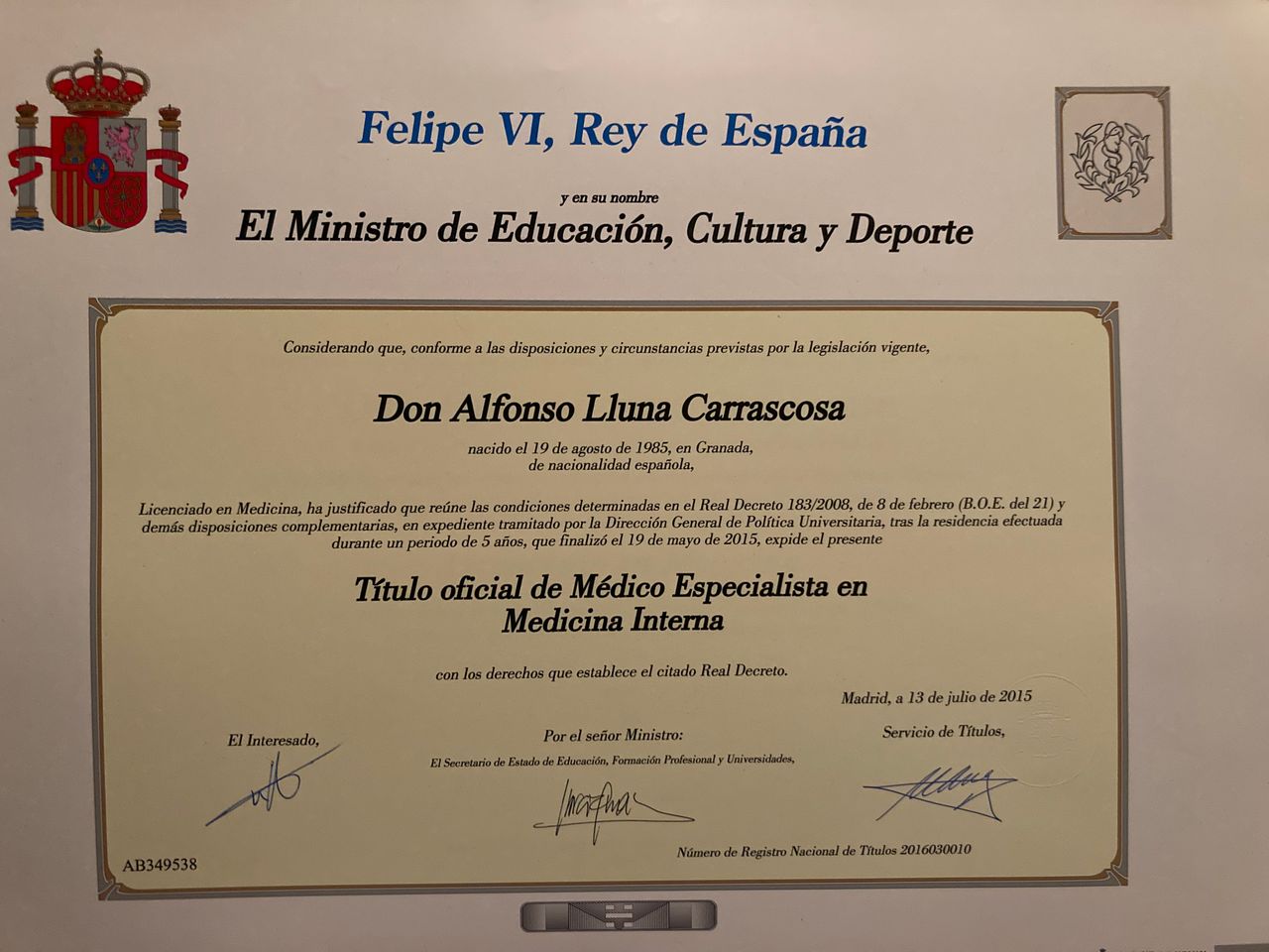 ¿Cuáles son las principales especialidades de Alfonso Lluna Carrascosa?Alfonso Lluna Carrascosa es internista. Te mostramos algunos de los servicios que ofrece gracias a su trayectoria y amplia experiencia: Primera visita Medicina Interna, Visitas sucesivas Medicina Interna, Consulta online.