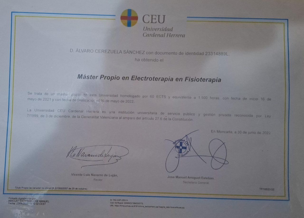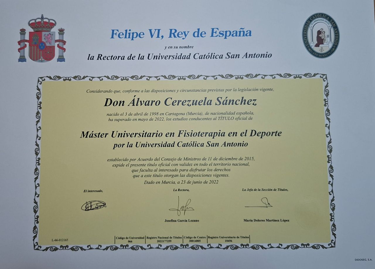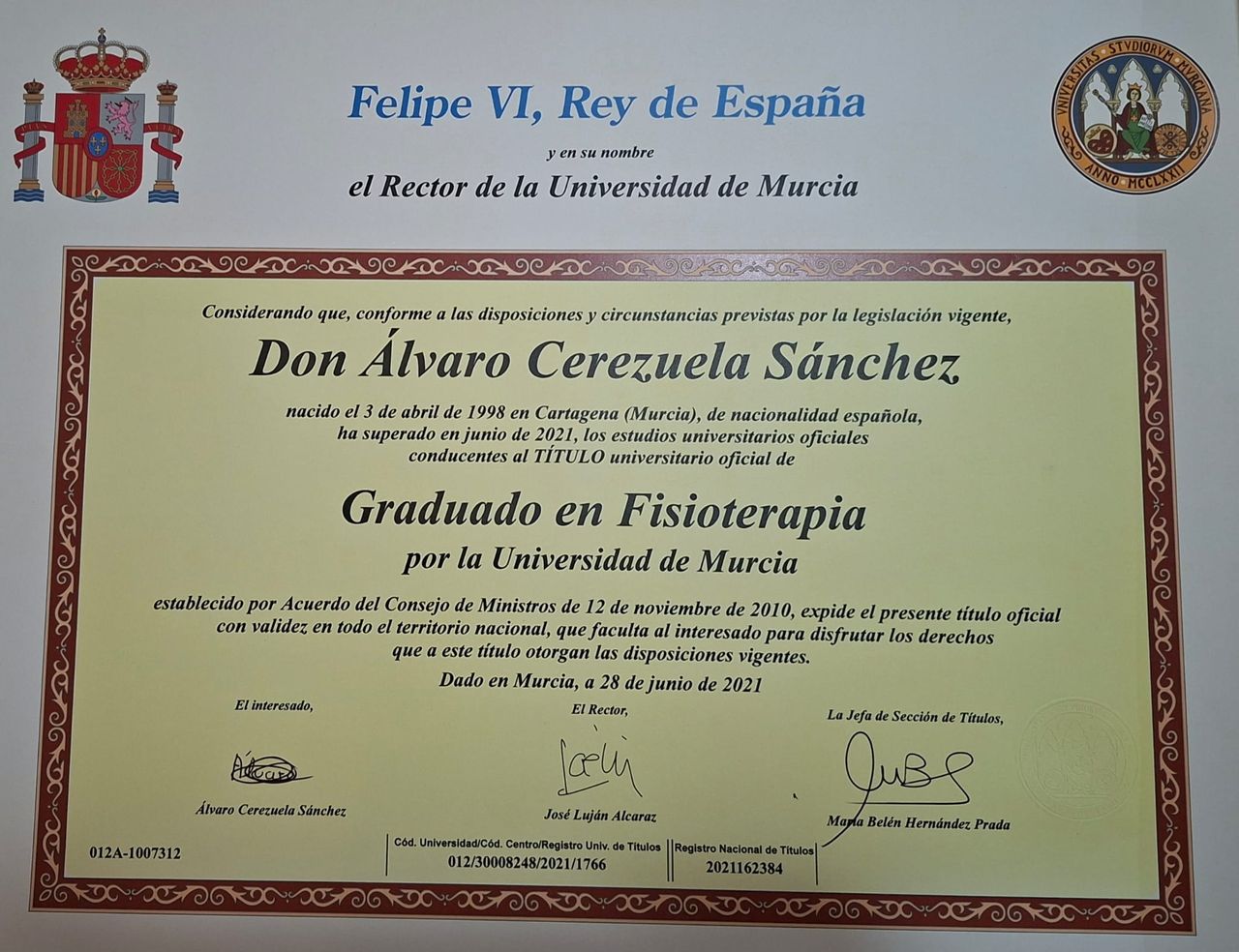 Soy fisioterapeuta especializado en el ámbito musculoesquelético y deportivo. Cursé el Grado en Fisioterapia en la Universidad de Murcia y el Máster en Fisioterapia del Deporte en la UCAM, donde actualmente completo también el Máster en Osteopatía y Terapia Manual.