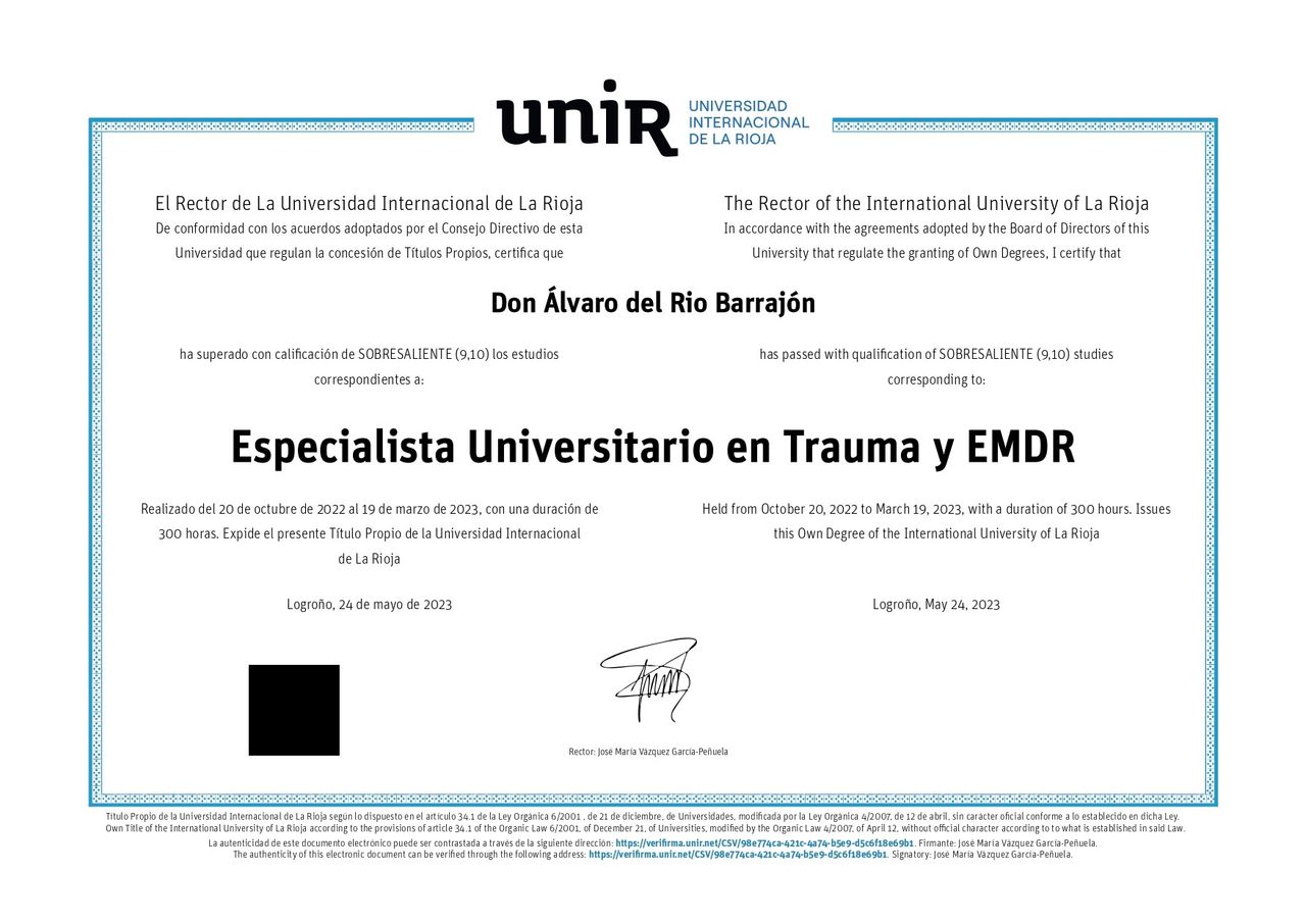 ¿Cuáles son las principales especialidades de Alvaro Del Río Barrajón?Alvaro Del Río Barrajón es psicólogo. Te mostramos algunos de los servicios que ofrece gracias a su trayectoria y amplia experiencia: Consulta online, Consulta de psicología, Consulta psicoterapia de pareja, Primera visita terapia de pareja, Terapia de pareja online, Terapia de reprocesamiento del trauma, Terapia de apego, Psicoterapia para el trauma, Terapia para Trauma, Terapia psicológica.