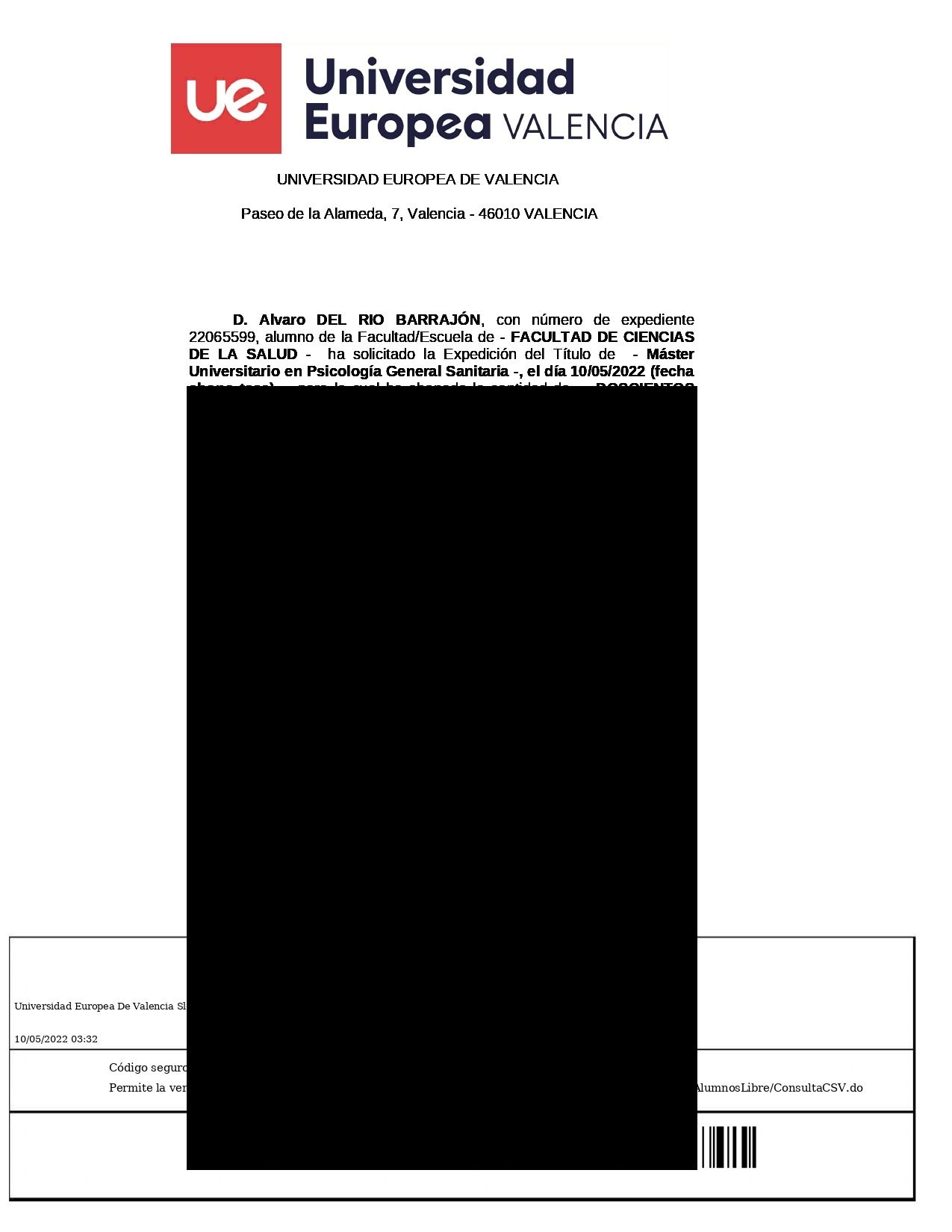 ¿Puedo hacer la visita con Alvaro Del Río Barrajón de forma online, sin tener que desplazarme hasta su consulta?Sí, Alvaro Del Río Barrajón ofrece consulta de forma remota. Solo tienes que seleccionar "consulta online" cuando vayas a reservar cita desde el calendario, y así podrás ver las fechas y horas disponibles.