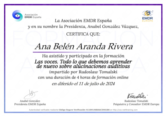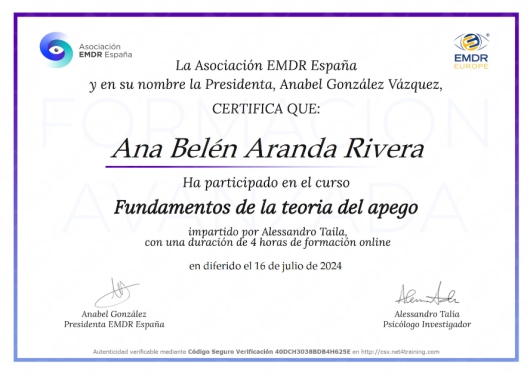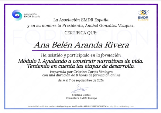 Mis pacientes me definen como una persona que posee una gran calidad humana, entrega y una especial sensibilidad hacia los demás. Mi pasión por ayudar a los pacientes va intrínseco en mí y es lo que me invita a crecer y a querer hacerlo cada día más y mejor. Sé dotar a cada paciente de la herramienta que necesita en cada momento y adaptarla a su problemática específica. Experta en terapia de pareja, ansiedad, depresión, dependencia emocional y autoestima. Te invito a que pruebes conmigo una manera diferente de abordar tus problemas, desde una perspectiva muy práctica y efectiva en donde verás resultados desde el primer momento.