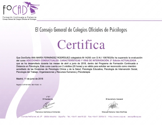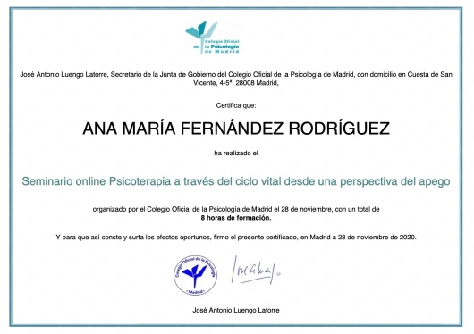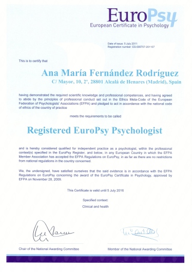 Tengo consulta en Alcalá de Henares y también en Madrid capital. Me encanta mi profesión y acompañar en esos procesos difíciles que todas las personas tenemos que pasar en algún momento. En todos estos años, no he dejado de formarme en nuevas terapias para ofrecer un servicio actualizado y de calidad. La salud psicológica es, en estos tiempos, uno de nuestros principales desafíos como sociedad y me siento muy orgullosa de poder contribuir en ello.
