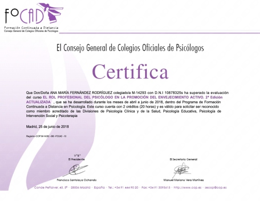 ¿Cuáles son las principales especialidades de Ana Fernández Rodríguez?Ana Fernández Rodríguez es psicóloga. Te mostramos algunos de los servicios que ofrece gracias a su trayectoria y amplia experiencia: Primera visita Psicología, Consulta de Psicología Sanitaria, Consulta online, Orientación en la crianza de los hijos, Visita de tratamiento, Terapia individual, Psicología online, Terapia cognitivo-conductual, Visitas sucesivas Psicología, Estrategias terapéuticas en comunicación y habilidades sociales.