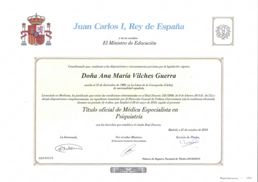 Tengo 19 años de experiencia en la evaluación y el tratamiento de las enfermedades mentales. Hice la especialidad en el Hospital Universitario Virgen del Rocío de Sevilla. He trabajado allí desde entonces, los primeros años en consultas y los últimos 9 años, en la Unidad de Hospitalización del Hospital General. Recientemente, he vuelto a atender pacientes en consultas externas. Me siento muy orgullosa de mi profesión y gracias a ella de poder dedicarme a ayudar a gente que lo necesita. Si tienes ansiedad, trastornos del estado de ánimo, miedos que no controlas, obsesiones, dificultades relacionales, o cualquier otro síntomas que te preocupe, solicita una cita y hablaremos.
