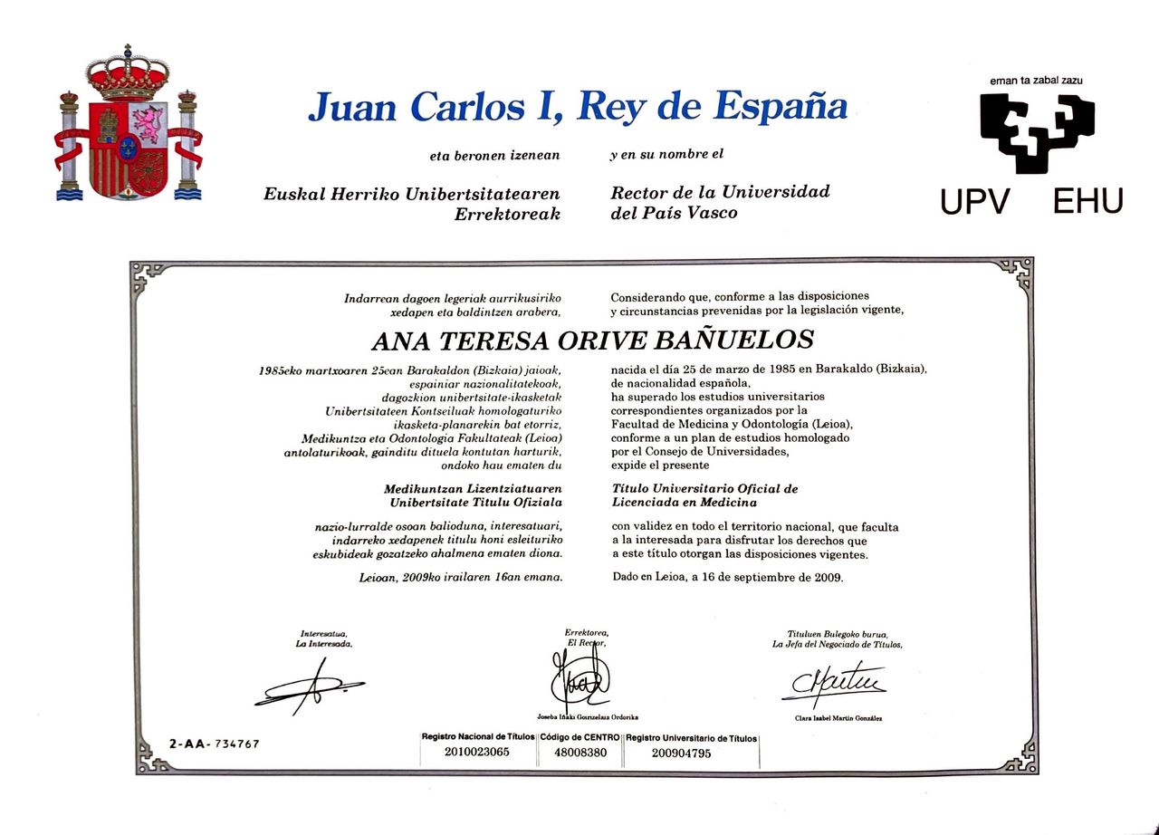 ¿Cómo puedo reservar una cita con Ana Orive Bañuelos?El calendario que muestra Ana Orive Bañuelos en Doctoralia está actualizado en tiempo real, por lo que solo tienes que elegir qué día y hora te va mejor de entre las disponibles. La reserva es gratuita, y además recibes un recordatorio antes de la visita.