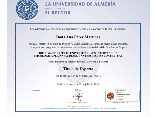 Estoy especializada en psicología perinatal (embarazo, posparto, duelo perinatal) y cuento con amplia experiencia en terapia en adultos, infanto-juvenil, así como en la intervención con parejas.