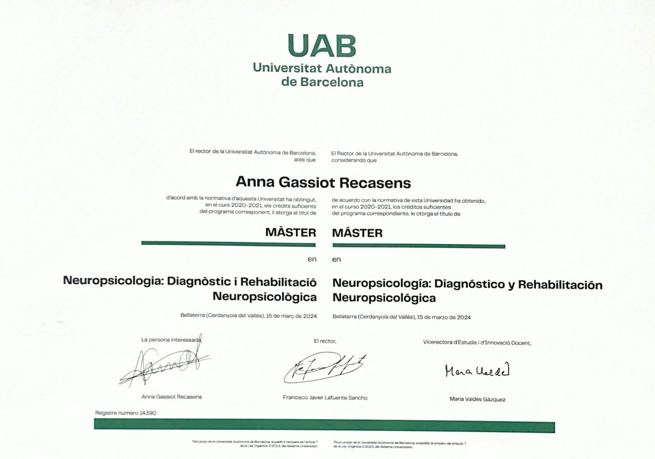 Como Psicóloga General Sanitaria y Neuropsicóloga Clínica, creo profundamente en la formación constante: complemento mi formación con supervisiones, cursos e investigación en la universidad (a consultar el apartado currículum en la página web). Ésta actualización me asegura una práctica rigurosa, que es imprescindible para la labor tan subjetiva de la psicoterapia; así como la colaboración con otros profesionales y la posibilidad de aprender más allá de la práctica.