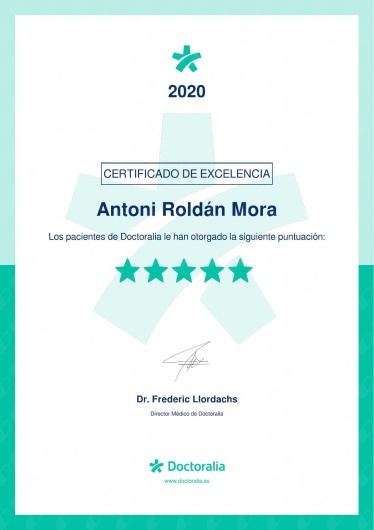 ¿Qué opinan los pacientes de Antoni Roldán Mora?Un total de 49 pacientes han querido dejar una opinión sincera y real sobre Antoni Roldán Mora, otorgándole además una valoración media de 5 estrellas (sobre un máximo de 5).