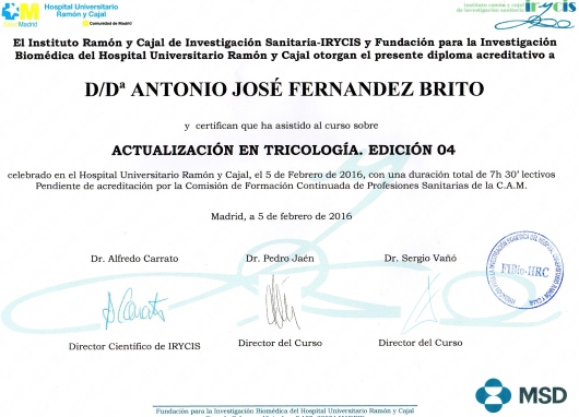 Actualmente es el Director Médico de Microcapilar Hair Clinic en el barrio de Chamberí. Madrid, España.