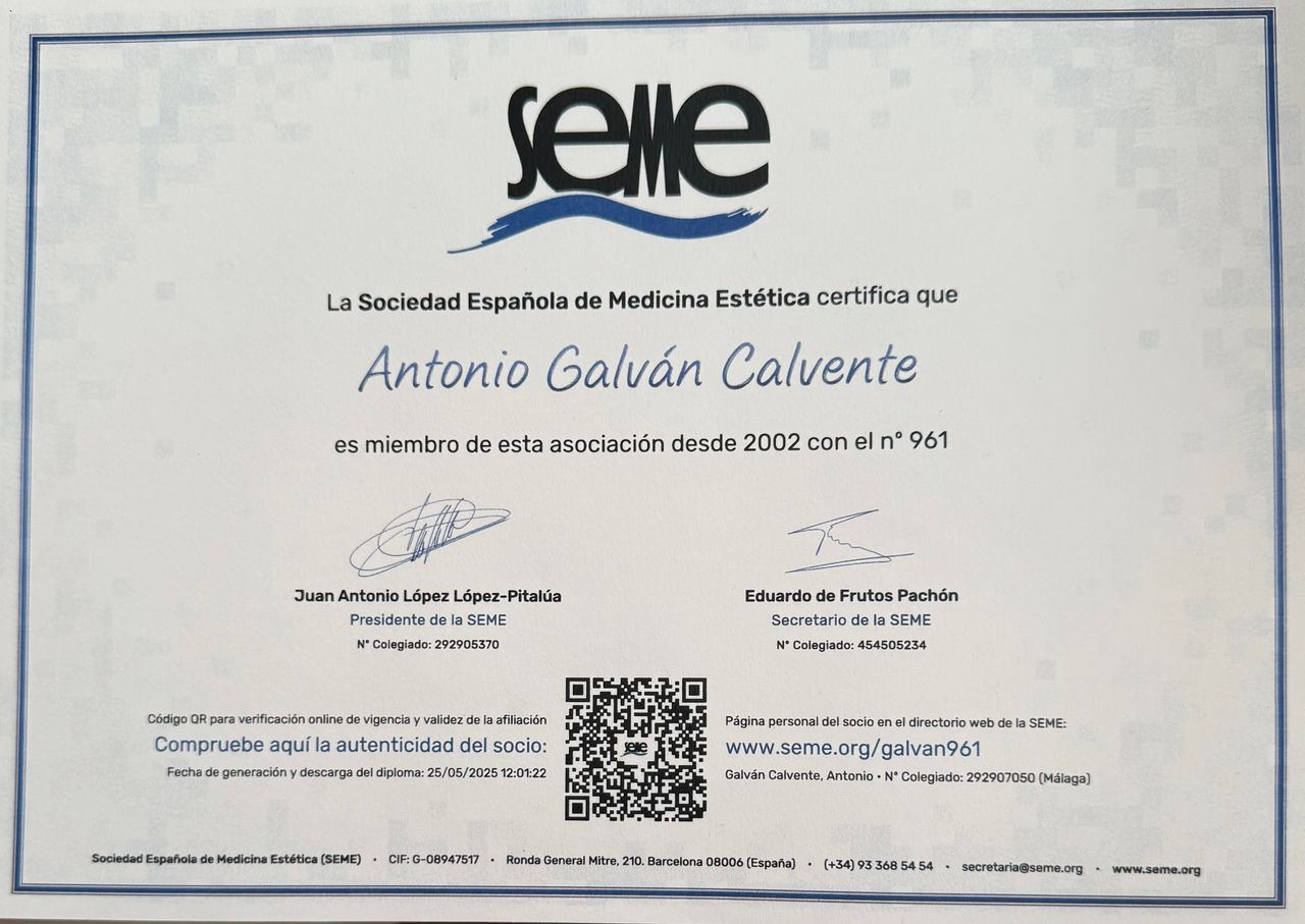 Posteriormente fui acreditado como Médico Estético por el Ilustre Colegio Oficial de Médicos de Málaga.