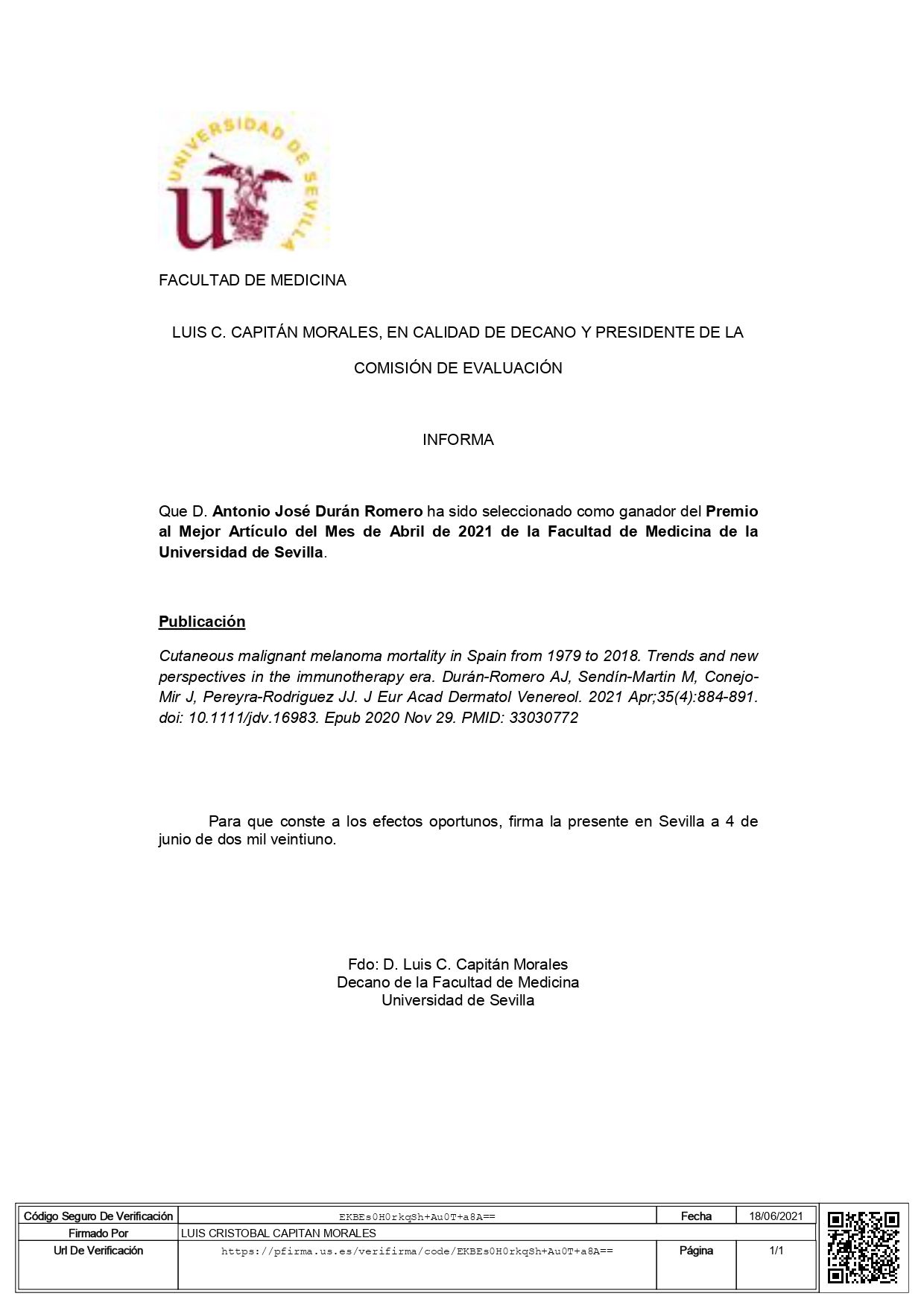 ¡Hola a todos! Soy el doctor Antonio José Durán Romero, dermatólogo. Estudié Medicina en la Universidad de Sevilla (2011-17) y realicé mi especialización en Dermatología Médico-Quirúrgica y Venereología en el Hospital Universitario Virgen del Rocío (Sevilla), finalizando la formación en 2022. Para ampliar mis conocimientos, realicé rotaciones en: