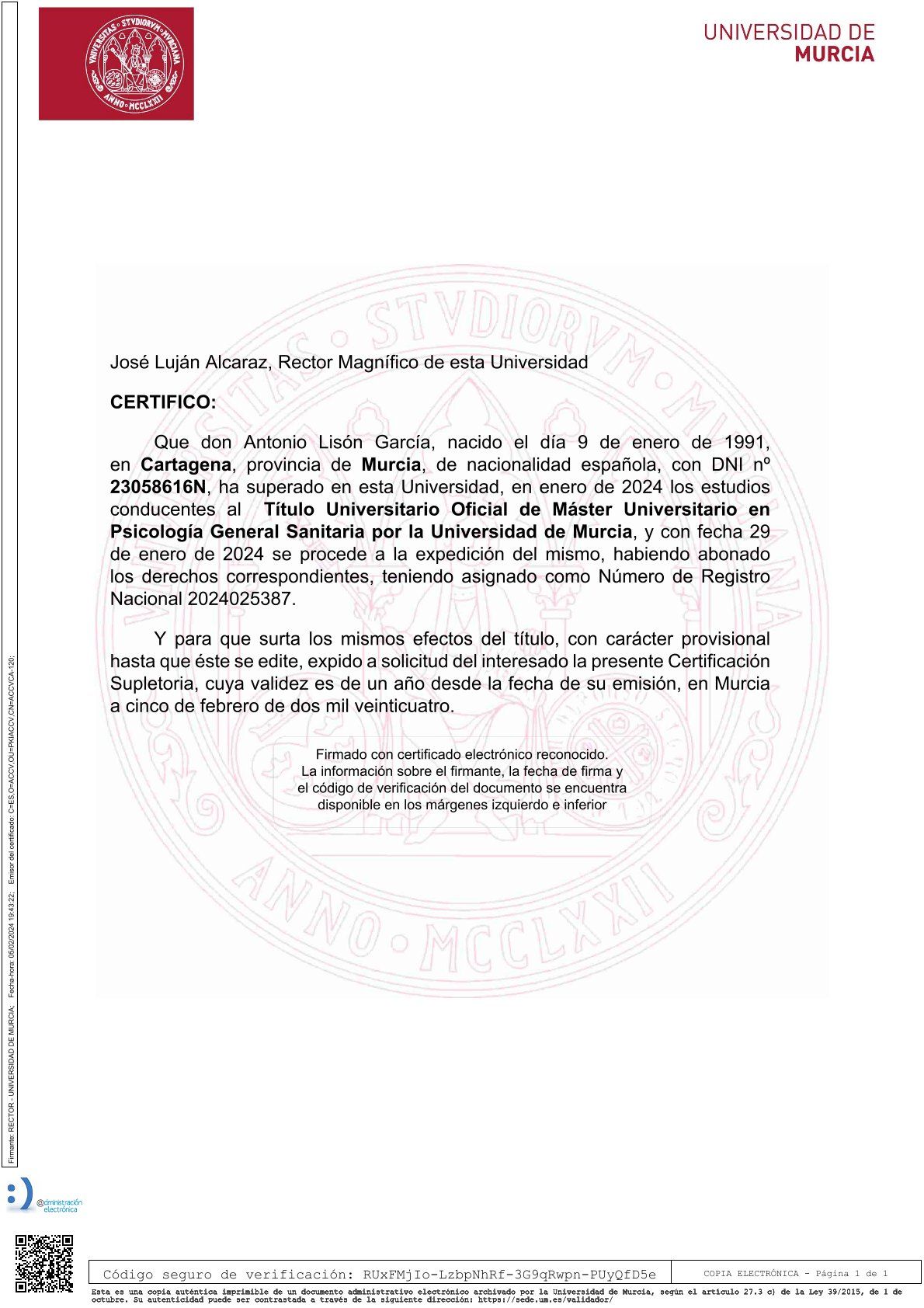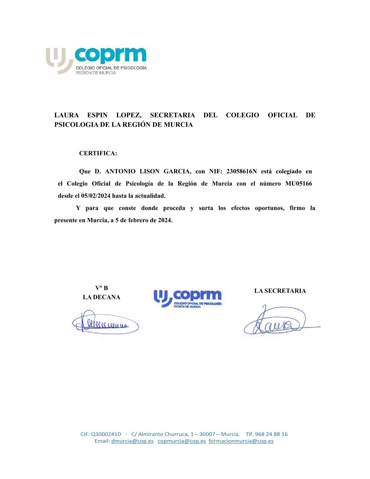 Núm. Colegiado: MU05166