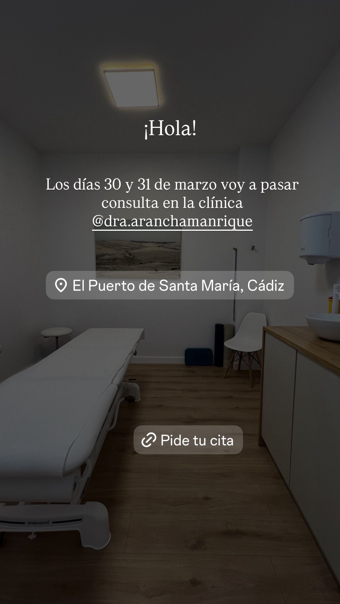 Los días 30 y 31 de marzo pasaré consulta en la Clínica Dra Arancha Manrique. Si necesitas ayuda con tu dolor y/o patología, ¡no dudes en coger cita!