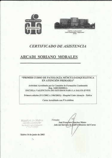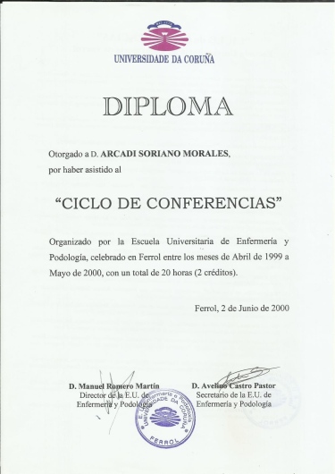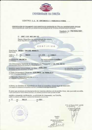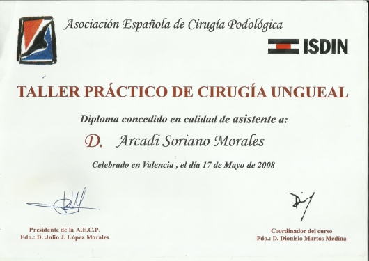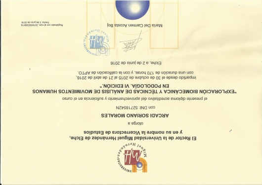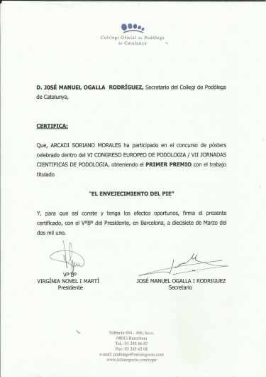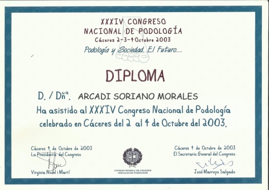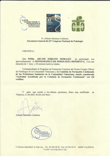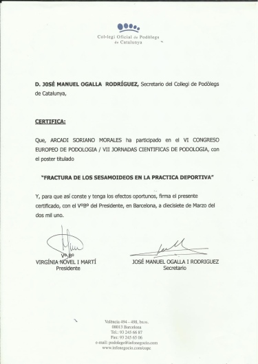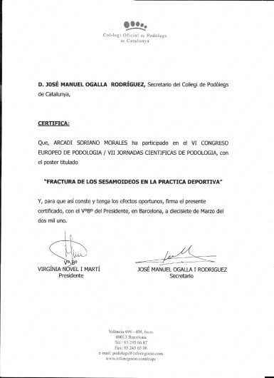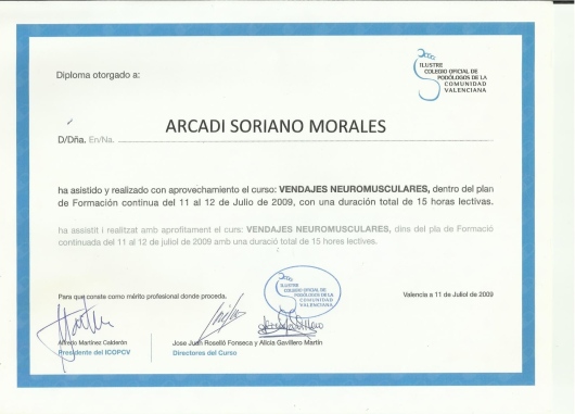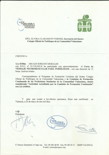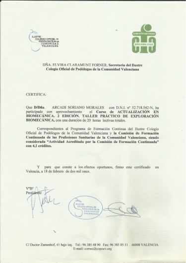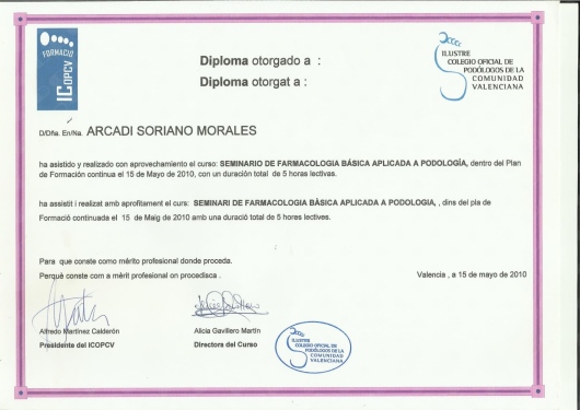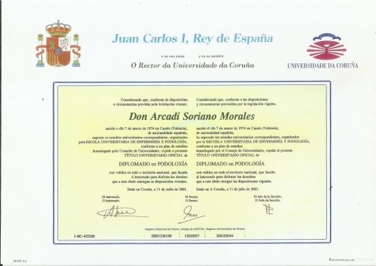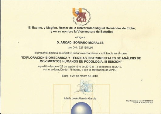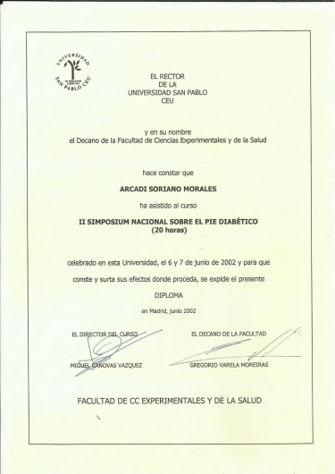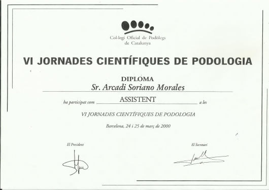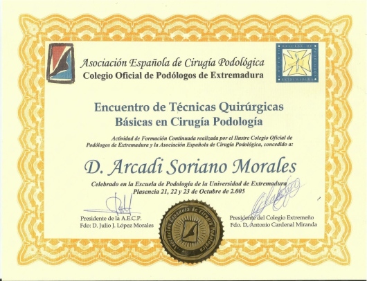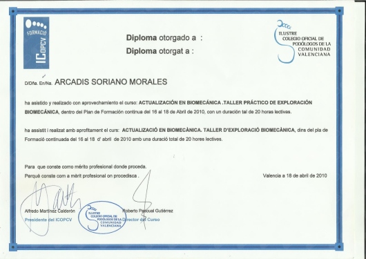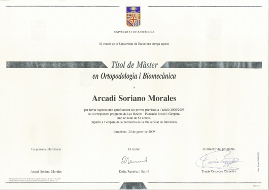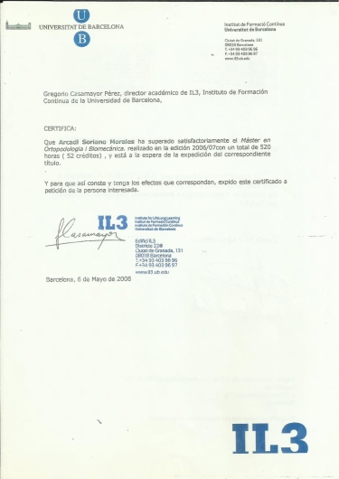 Master en Ortopodologia por la universidad de Barcelona el año 2002.