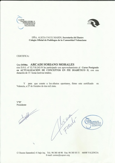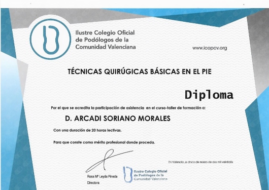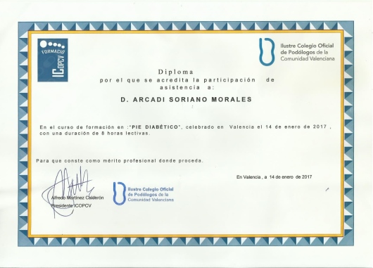 Ha realizado diversos cursos de formación sobre el pie de riesgo del ICOPCV.