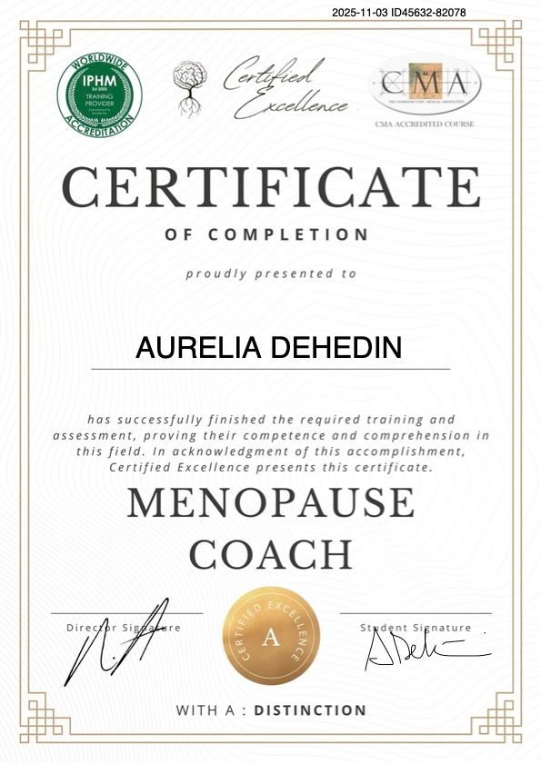 Hola, soy Aurélia, coach especializada en (peri)menopausia y estilo de vida con enfoque natural. Acompaño a mujeres que sienten que “ya no se reconocen” a recuperar energía, claridad y bienestar en esta etapa de cambios tan profunda.