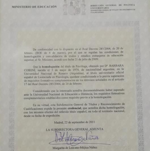 A partir de 2009 me radico en España y desde entonces, llevo adelante mi trabajo profesional en el área de la consulta privada para la atención de adultos y adolescentes.