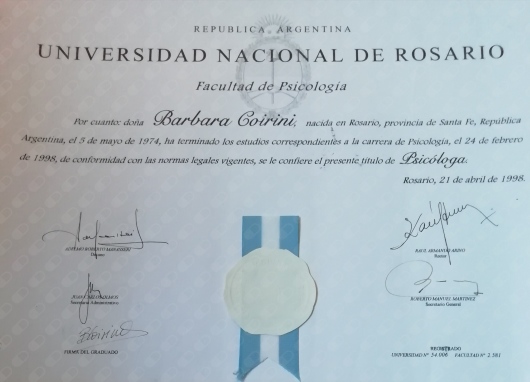 Me desempeño como psicóloga desde 1998. En Argentina, mi país natal, he realizado la labor profesional en el ámbito hospitalario en los inicios y, fundamentalmente, en el ámbito de la consulta privada en forma permanente durante 10 años. También allí he participado en el ámbito de la orientación vocacional para jóvenes y funciones docentes en el ámbito universitario.