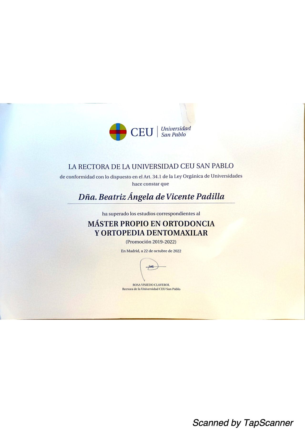 La Dra. de Vicente se encuentra en continua formación, acudiendo a cursos y conferencias para estar actualizada y ofrecer el mejor tratamiento a sus pacientes. Actualmente, se está formando en el curso modular de Ortodoncia y Cirugía Ortognática, para aquellos pacientes que requieran de tratamiento ortodóncico y quirúrgico.