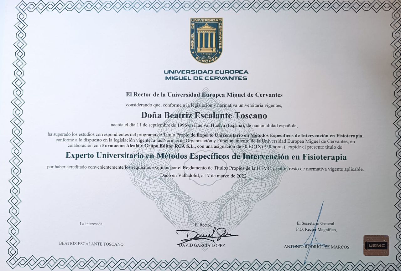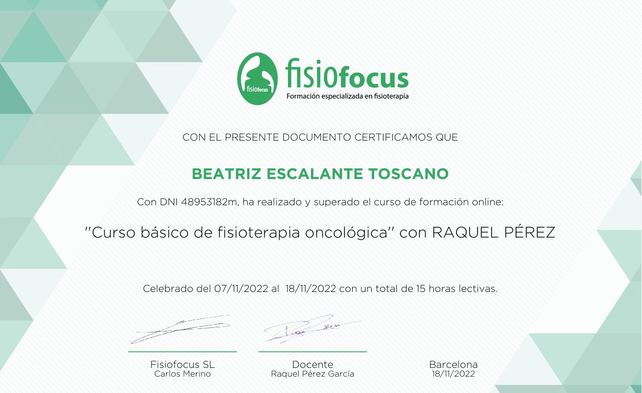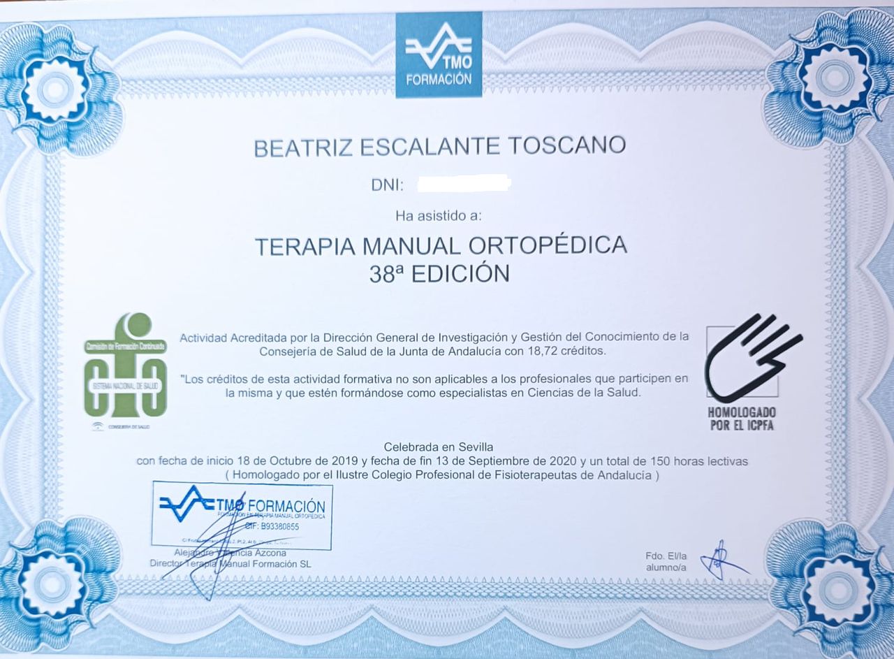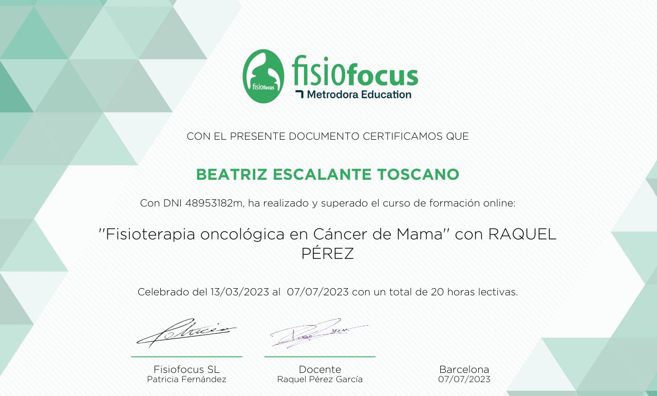¿Cuáles son las principales especialidades de Beatriz Escalante?Beatriz Escalante es fisioterapeuta. Te mostramos algunos de los servicios que ofrece gracias a su trayectoria y amplia experiencia: Visita Fisioterapia, Rehabilitación domiciliaria, Visitas sucesivas fisioterapia, Masaje terapéutico, Visita de tratamiento, Tratamiento del dolor, Ejercicio terapéutico, Visita domiciliaria fisioterapia, Primera visita fisioterapia, Neurodinámica.