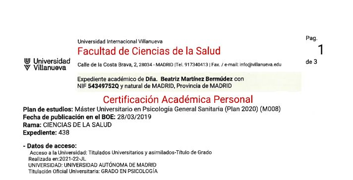 ¡Hola! Soy Beatriz, Psicóloga General Sanitaria (N° Colegiada M-39229).