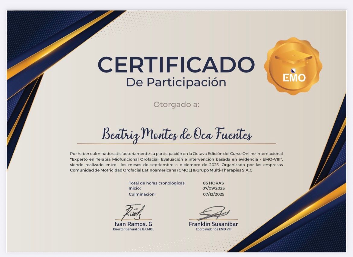 ¿Cuáles son las principales especialidades de Beatriz Montes De Oca Fuentes?Beatriz Montes De Oca Fuentes es logopeda. Te mostramos algunos de los servicios que ofrece gracias a su trayectoria y amplia experiencia: Visita Logopedia y Logofoniatría, Consulta online, Primera Visita Logopedia y Logofoniatría online.