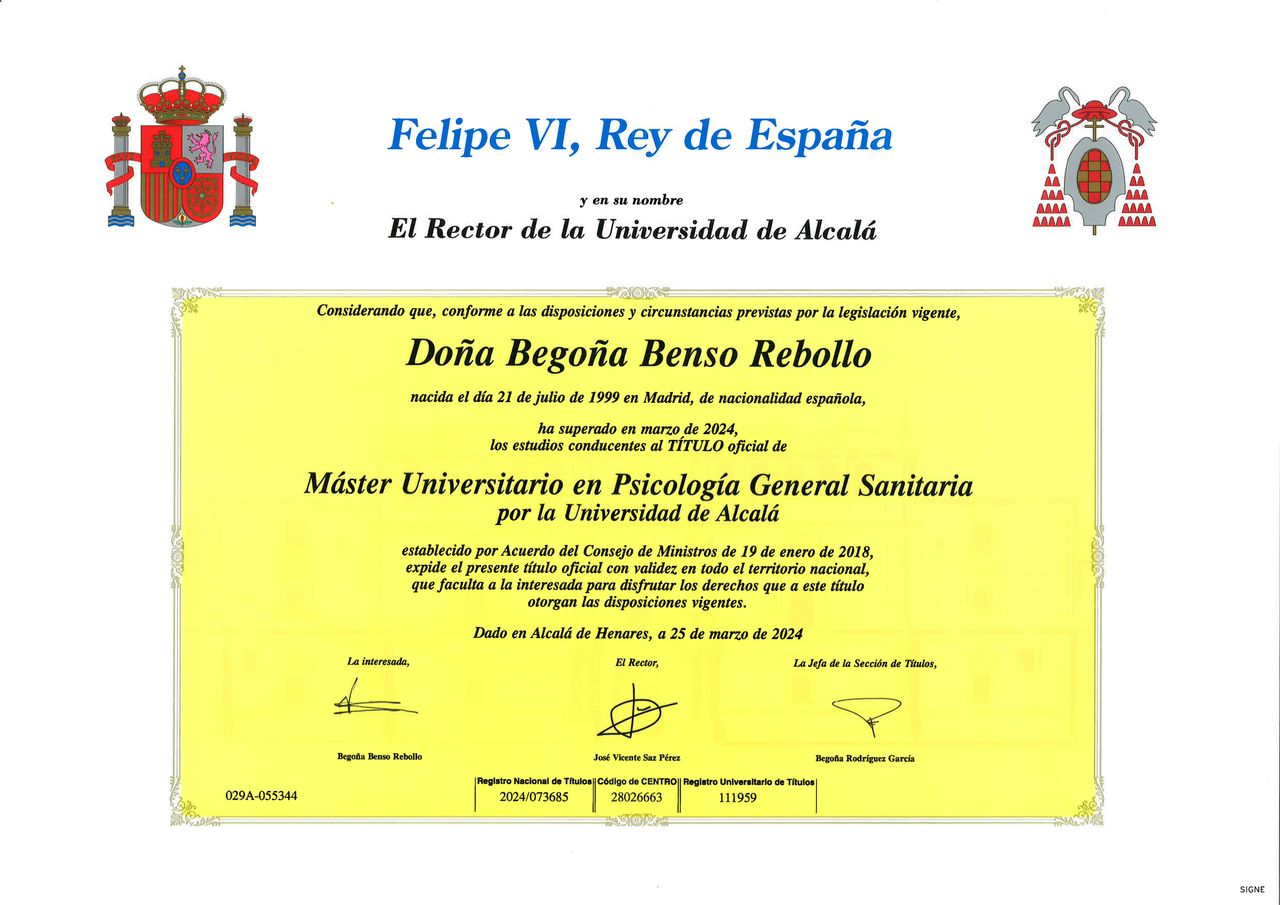 ¿Qué idiomas habla Begoña Benso Rebollo?Puedes comunicarte con Begoña Benso Rebollo en Español.