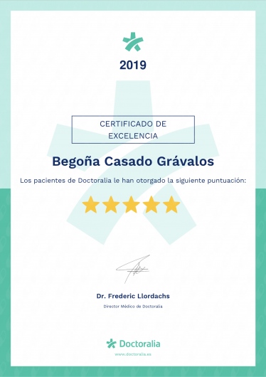 ¿Cómo puedo reservar una cita con Begoña Casado Grávalos?El calendario que muestra Begoña Casado Grávalos en Doctoralia está actualizado en tiempo real, por lo que solo tienes que elegir qué día y hora te va mejor de entre las disponibles. La reserva es gratuita, y además recibes un recordatorio antes de la visita.