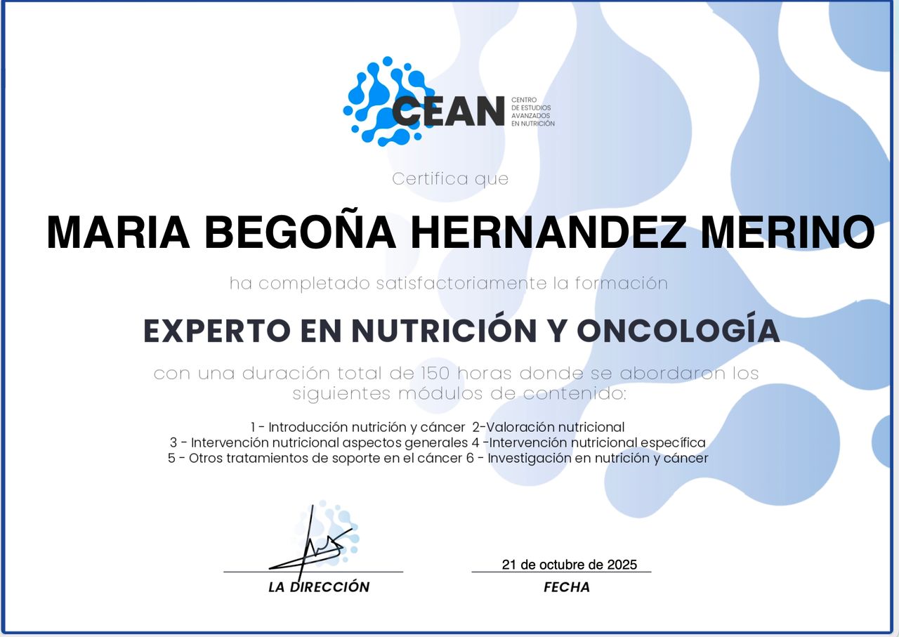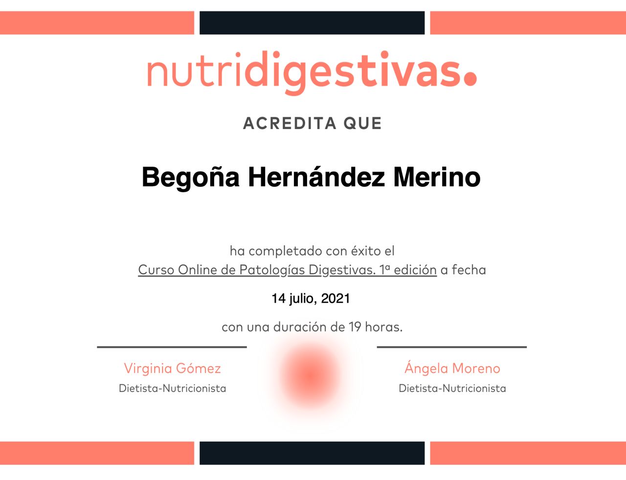 ¿Cuáles son las principales especialidades de Begoña Hernández Merino?Begoña Hernández Merino es terapeuta complementaria, dietista nutricionista. Te mostramos algunos de los servicios que ofrece gracias a su trayectoria y amplia experiencia: Nutrición Online, Consulta gratuita, Visita online de seguimiento.