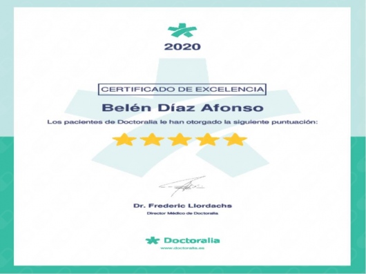 ¿Qué opinan los pacientes de Belén Díaz Afonso?Un total de 105 pacientes han querido dejar una opinión sincera y real sobre Belén Díaz Afonso, otorgándole además una valoración media de 5 estrellas (sobre un máximo de 5).