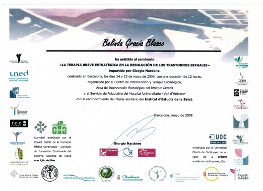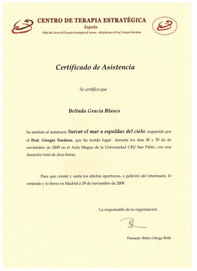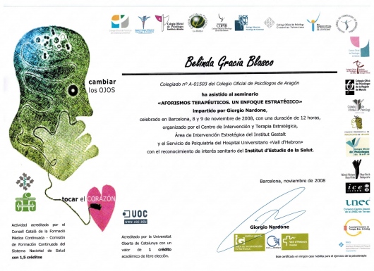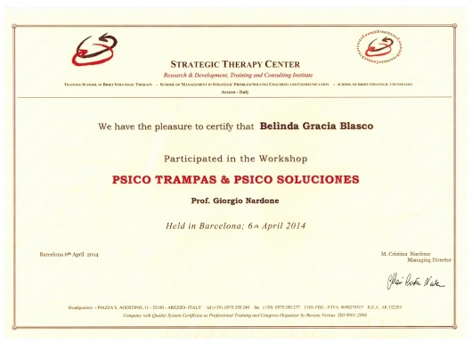 Fruto de mis constantes inquietudes y curiosidades he ido adquiriendo formación en: terapia breve estratégica, terapia sistémica, constelaciones familiares, mediación, resiliencia… y, por su puesto sigo en la continua búsqueda, mejora y crecimiento como persona y profesional.