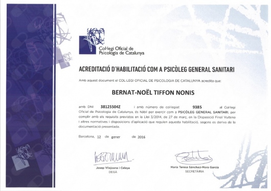 ¿Cuáles son las principales especialidades de Bernat-N. Tiffon?Bernat-N. Tiffon es psicólogo. Te mostramos algunos de los servicios que ofrece gracias a su trayectoria y amplia experiencia: Estudio de la personalidad criminal, Informe pericial psicológico, Incapacitaciones, tutelas y cautelas, Visitas sucesivas Psicología, Primera visita Psicología, Valoración del daño psicosocial, Negligencias médicas y daño moral, Psicoterapia en adolescentes, Psicoterapia individual, Evaluación de la competencia.