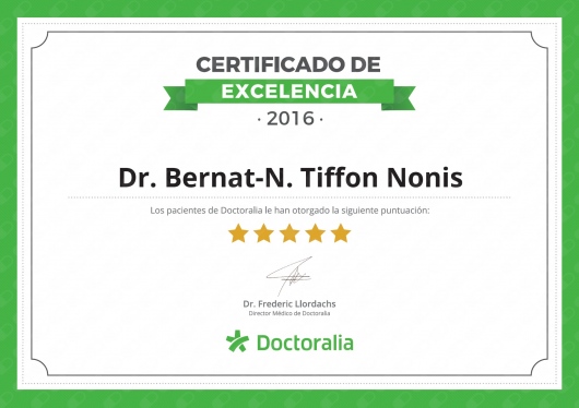 ¿Qué opinan los pacientes de Bernat-N. Tiffon?Un total de 5 pacientes han querido dejar una opinión sincera y real sobre Bernat-N. Tiffon, otorgándole además una valoración media de 5 estrellas (sobre un máximo de 5).