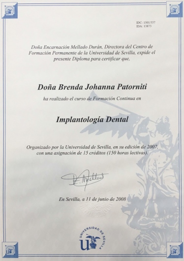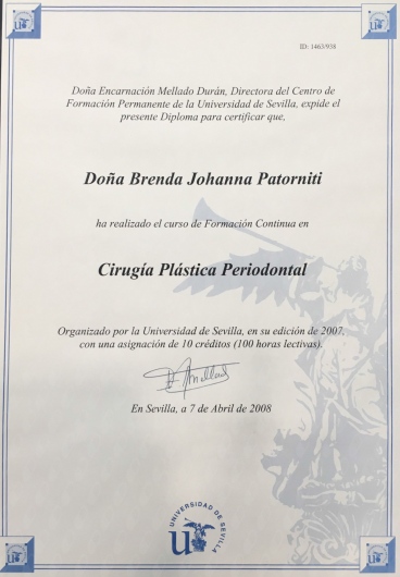 ¿Cuáles son las principales especialidades de Brenda Johanna Patorniti Vila?Brenda Johanna Patorniti Vila es dentista. Te mostramos algunos de los servicios que ofrece gracias a su trayectoria y amplia experiencia: Primera visita Odontología, Implantes dentales, Endodoncia, Blanqueamiento dental, Ortodoncia para adultos, Curetaje dental, Extracción de otras piezas dentarias, Carillas de composite.