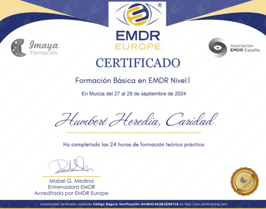 ¿Cuáles son las principales especialidades de Caridad Humbert Heredia?Caridad Humbert Heredia es psicóloga. Te mostramos algunos de los servicios que ofrece gracias a su trayectoria y amplia experiencia: Primera visita Psicología, Terapia con EMDR, Visitas sucesivas Psicología, Terapia de pareja, Diagnóstico y tratamiento para trastornos de ansiedad, Acompañamiento en el proceso de duelo, Tratamiento para trastornos de alimentación, Consulta online.