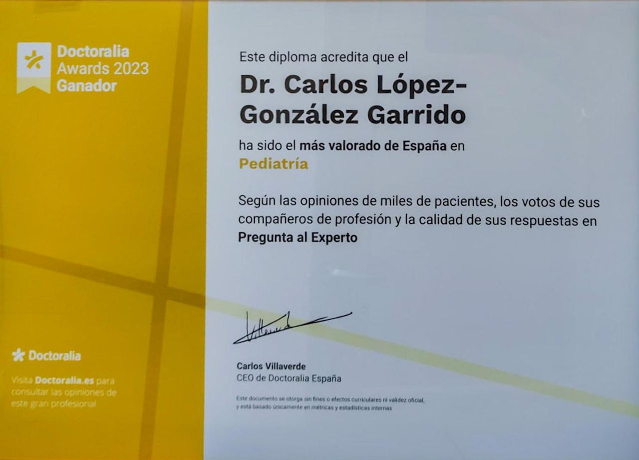 ¿Cuáles son las principales especialidades de Carlos López-González Garrido?Carlos López-González Garrido es pediatra. Te mostramos algunos de los servicios que ofrece gracias a su trayectoria y amplia experiencia: Apoyo y asesoramiento a la lactancia materna, Primera visita Pediatría, Revisión neuropediátrica, Control pediátrico, Consulta de Lactancia, Reconocimiento médico escolar, Urgencias pediátricas, Revisión pediátrica, Diagnóstico precoz y derivación a unidad especializada, Orientación en la crianza de los hijos.